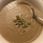 Sprinkle a tablespoon of nutritional yeast on the soup before eating. It adds a savoury, cheesy flavor and is a great source of B vitamins, including B12 (if fortified), as well as protein and fibre. It’s a simple way to enhance both flavour and nutrition!